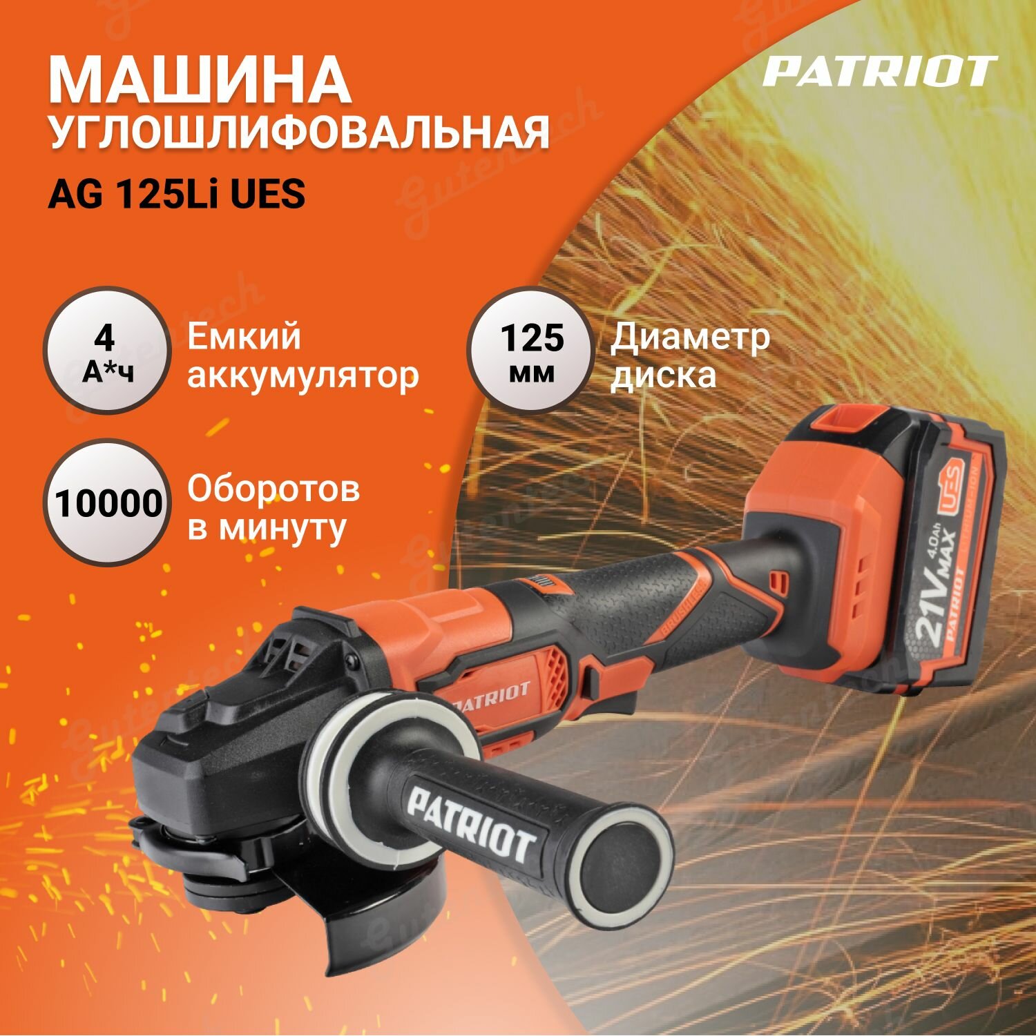 СохранитьУглошлифовальная машина PATRIOT AG 125Li UES 110303127 / li-ion аккумулятор 4 А*ч интересное: