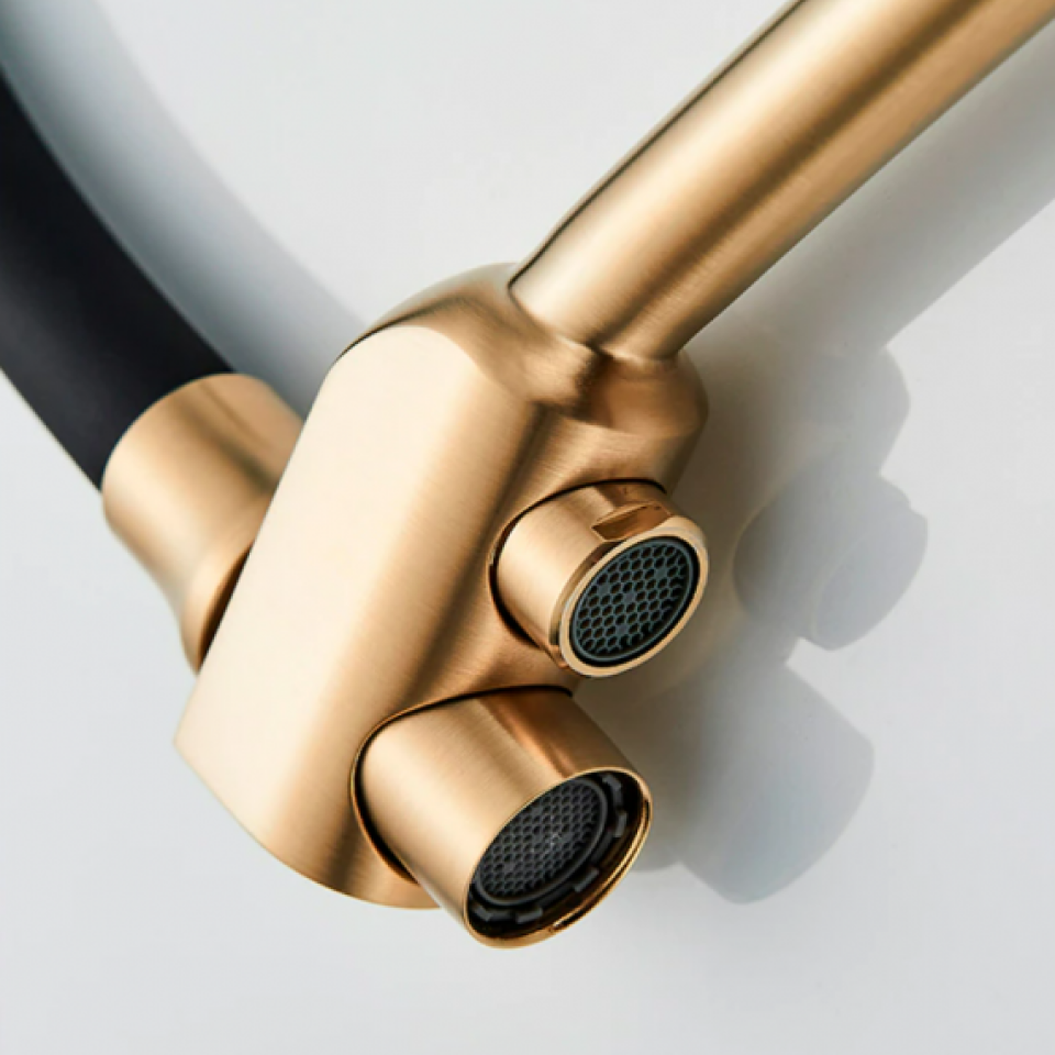 Смеситель для кухни с силиконовым изливом и выходом для питьевой воды А5179AW-13 Черный + Золото Accoona