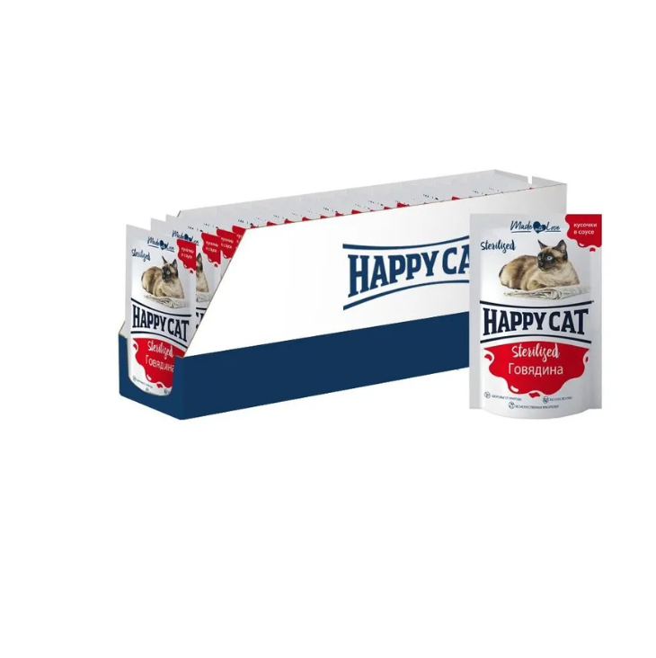 HAPPY CAT STERILIZED для взр кастрир котов и стерил кошек с говядиной в соусе пауч 85 гр 7504216 85 гр х 8 шт