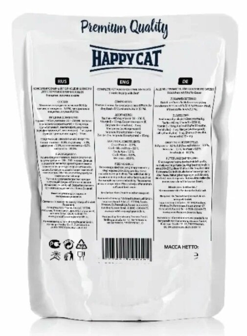 | Отзыв: | Не получила 10 штук Влажный корм для стерилизованных кошек Happy Cat Sterilised, , с лососем (кусочки в желе) |
