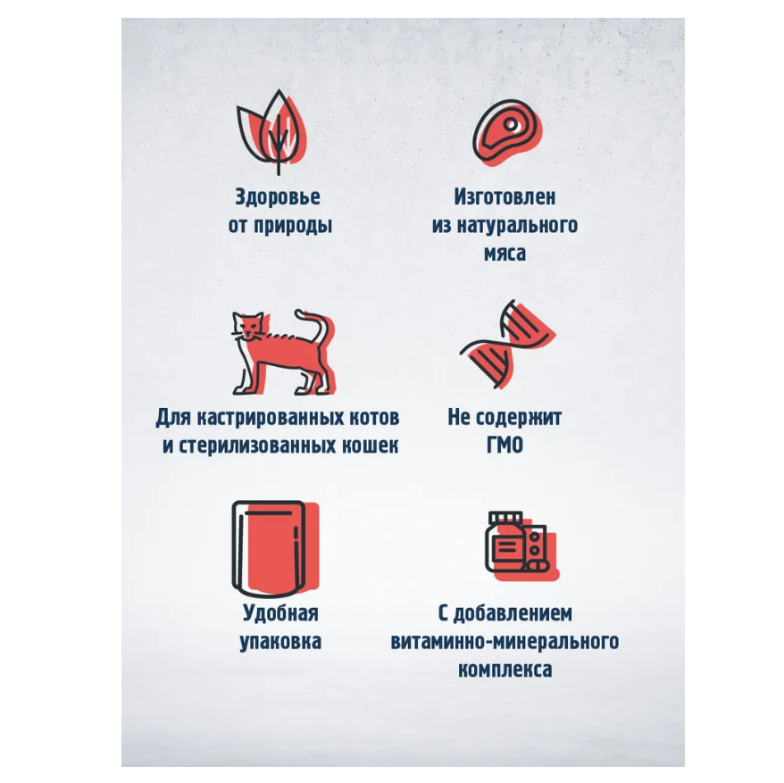 | Особые потребности | для стерилизованных/кастрированных / при чувствительном пищеварении / профилактика МКБ |