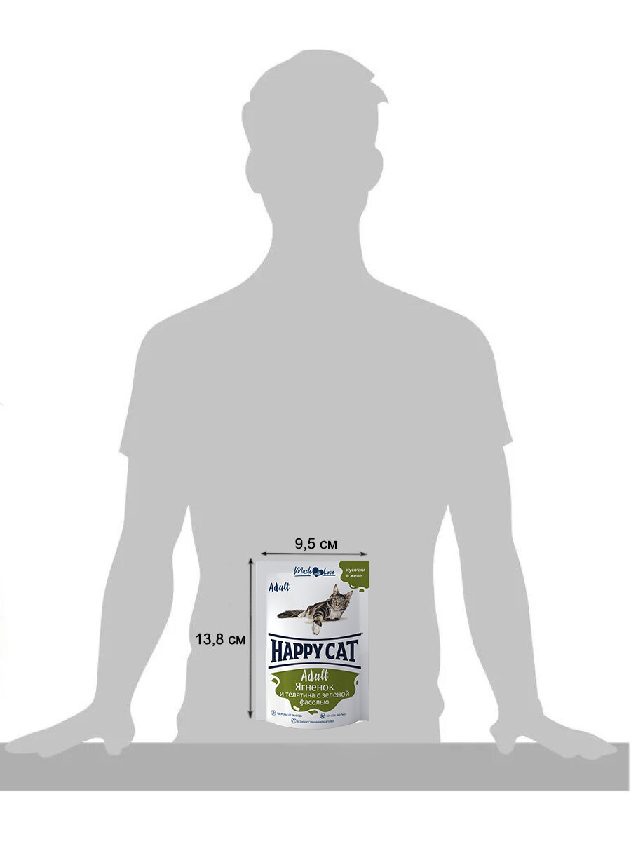 HAPPY CAT для взрослых кошек с ягненком, телятиной и зеленой фасолью в желе пауч 100 гр 7502307 100 гр х 6 шт