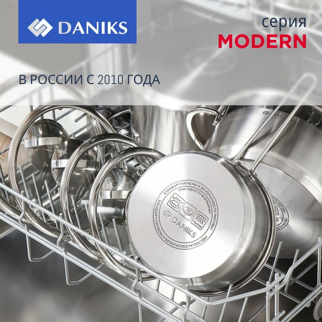 СохранитьНабор посуды нержавеющая сталь, 10 предметов, кастрюли 1.9,2.9,3.9,6.5 л, ковш 1.9 л, индукция, Daniks, Модерн, интересное: