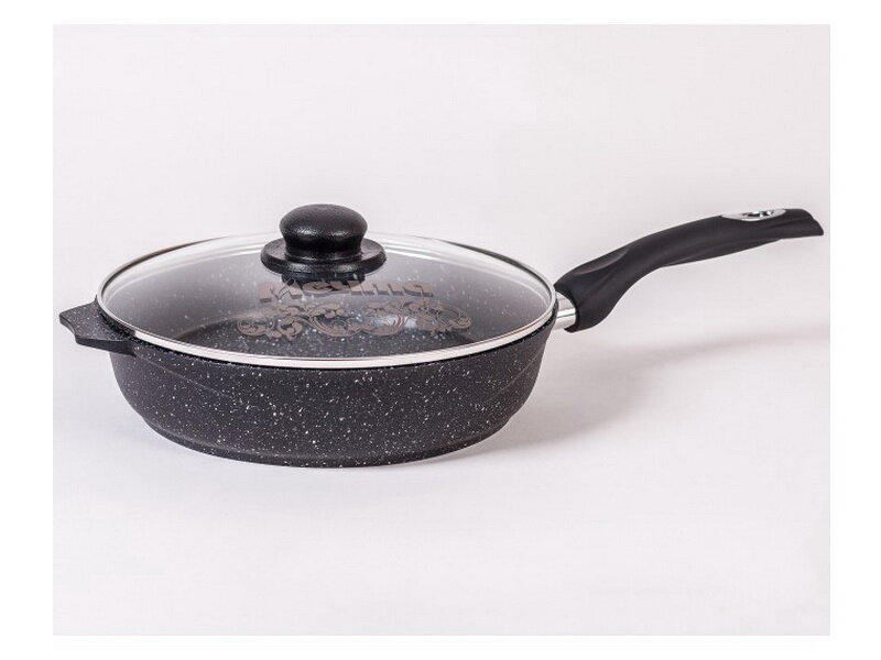 Сковорода мечта 28см с ручкой, антипригарное покрытие, стеклянная крышка, Гранит, black