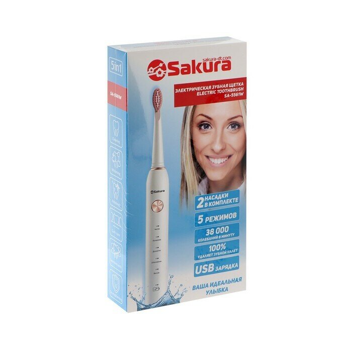 Купить Электрическая зубная щетка Sakura SA-5561W, звуковая, 38000 дв/мин, 2 насадки, розовая 7795193