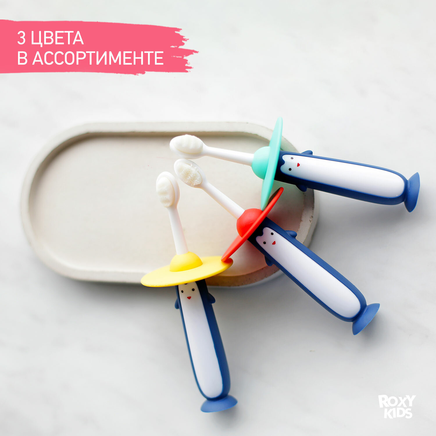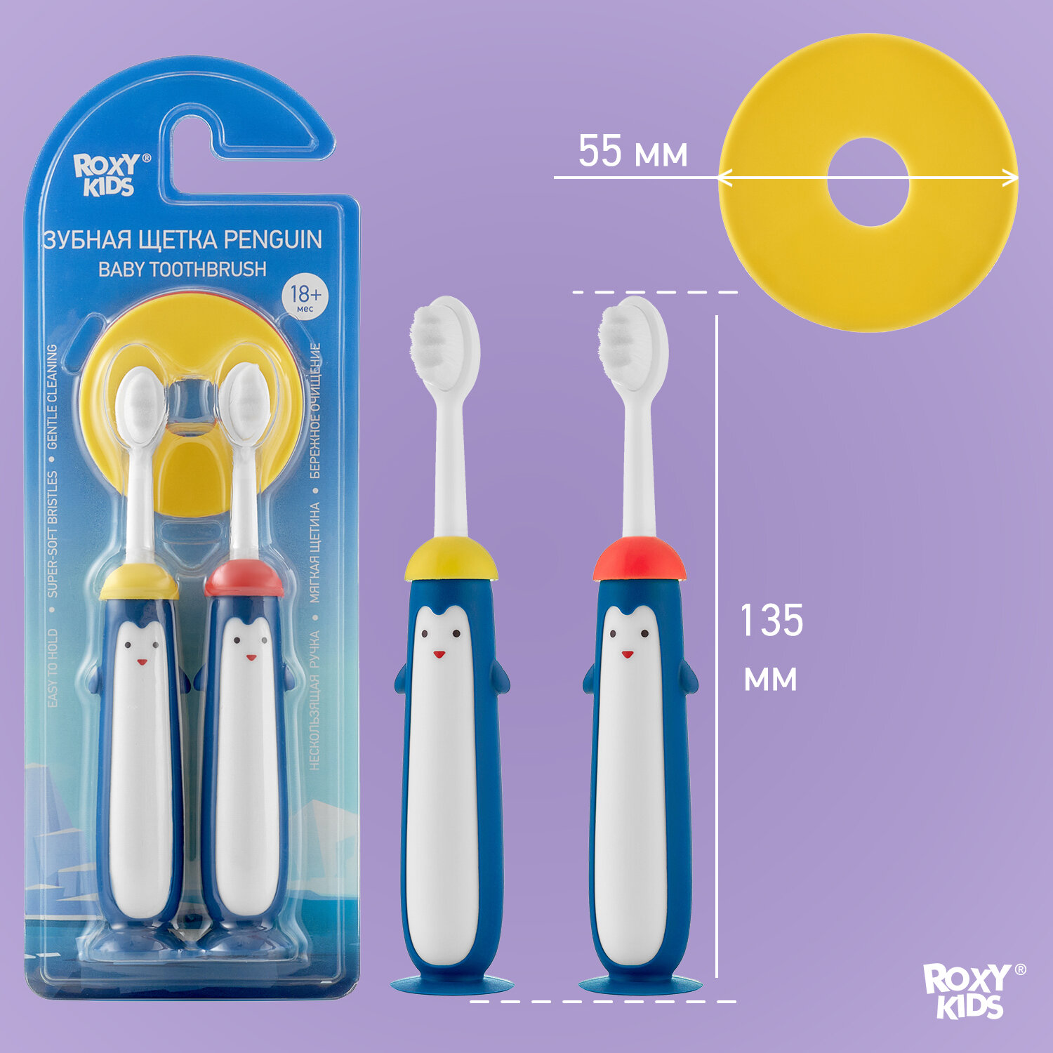 Детская зубная щетка "Пингвин"от ROXY KIDS, монопучковая, ультрамягкая, на присоске, 2шт, цвет голубой +желтый