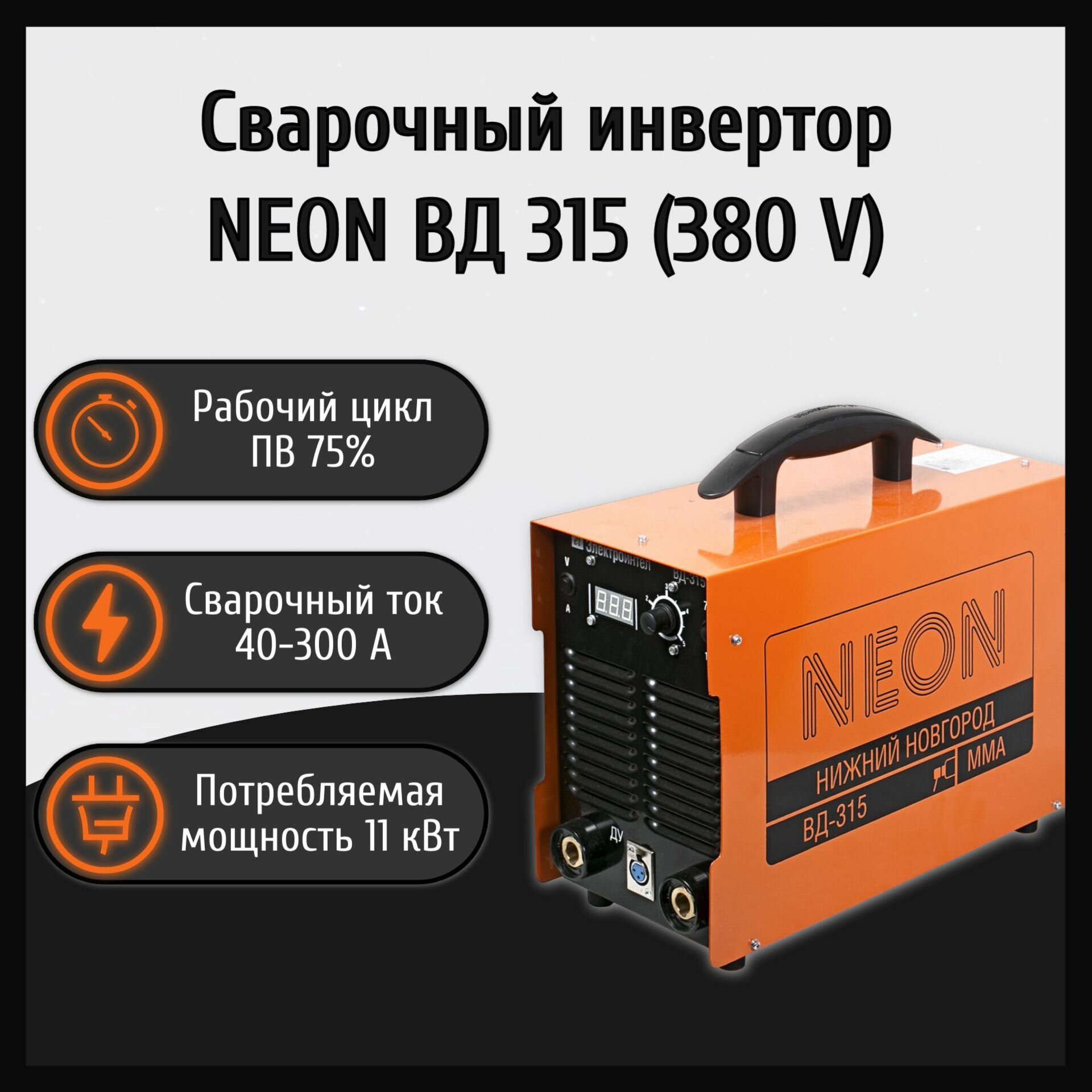 Сварочный инвертор NEON ВД-315 11000 Вт, 380 В, свароч. ток 300 А