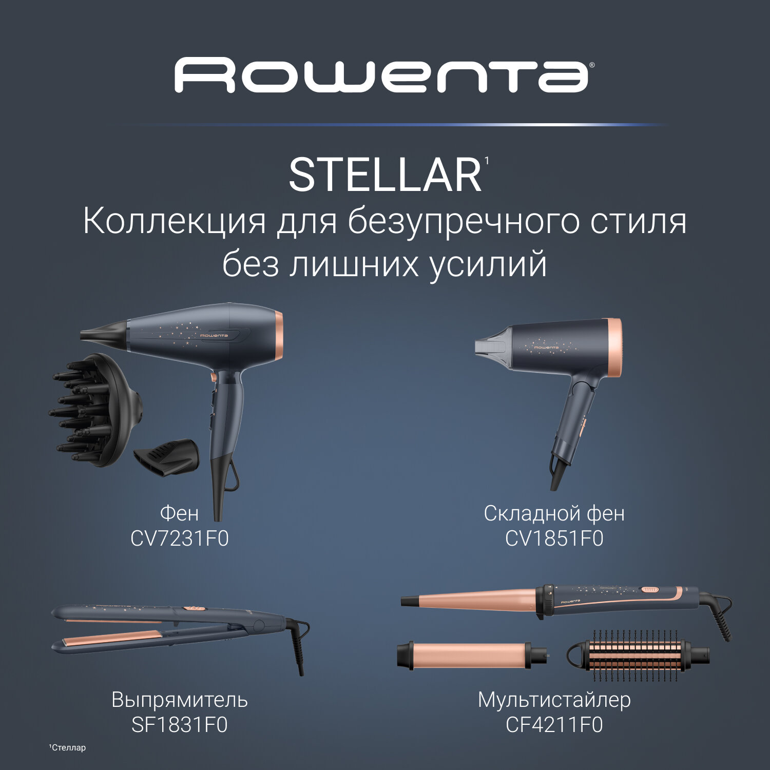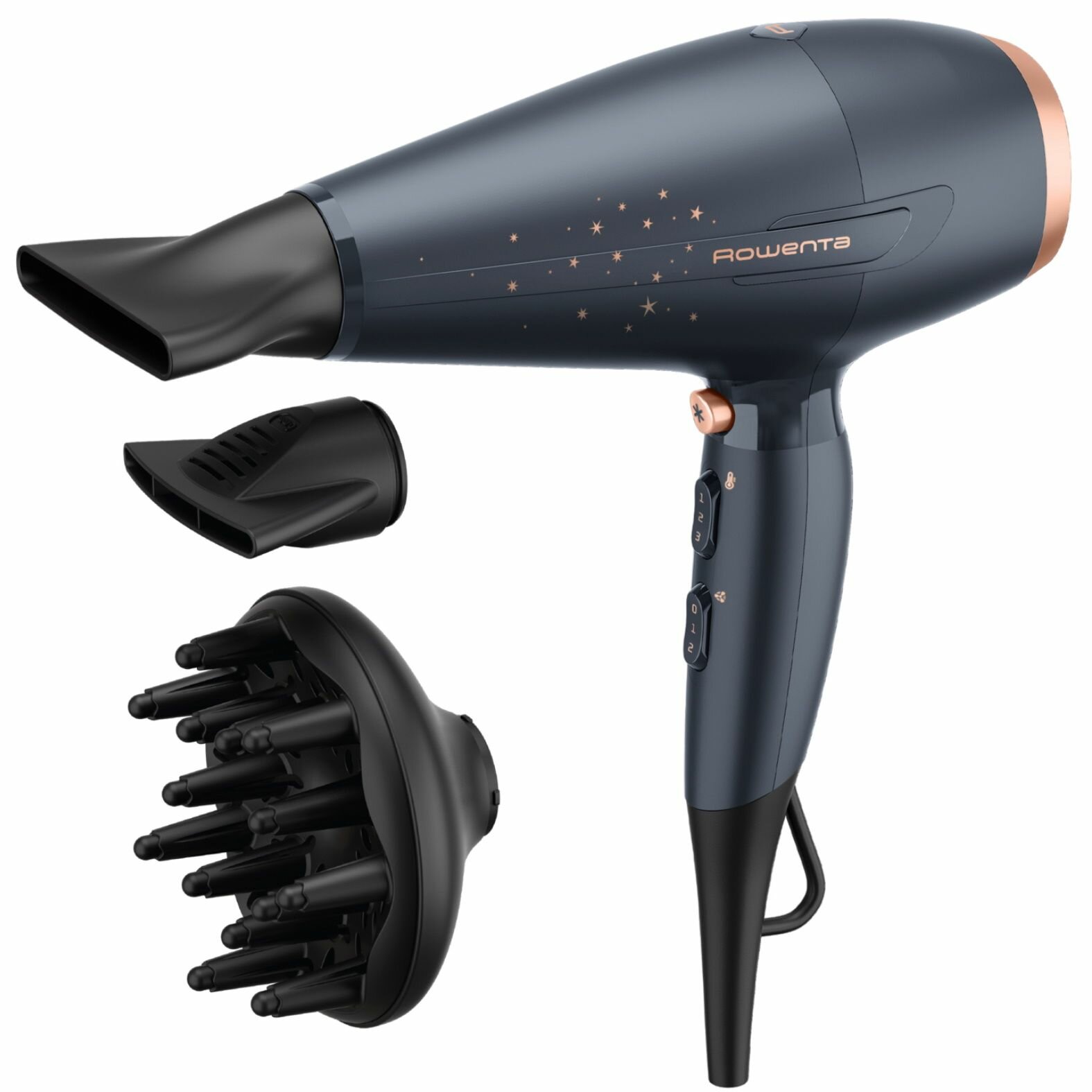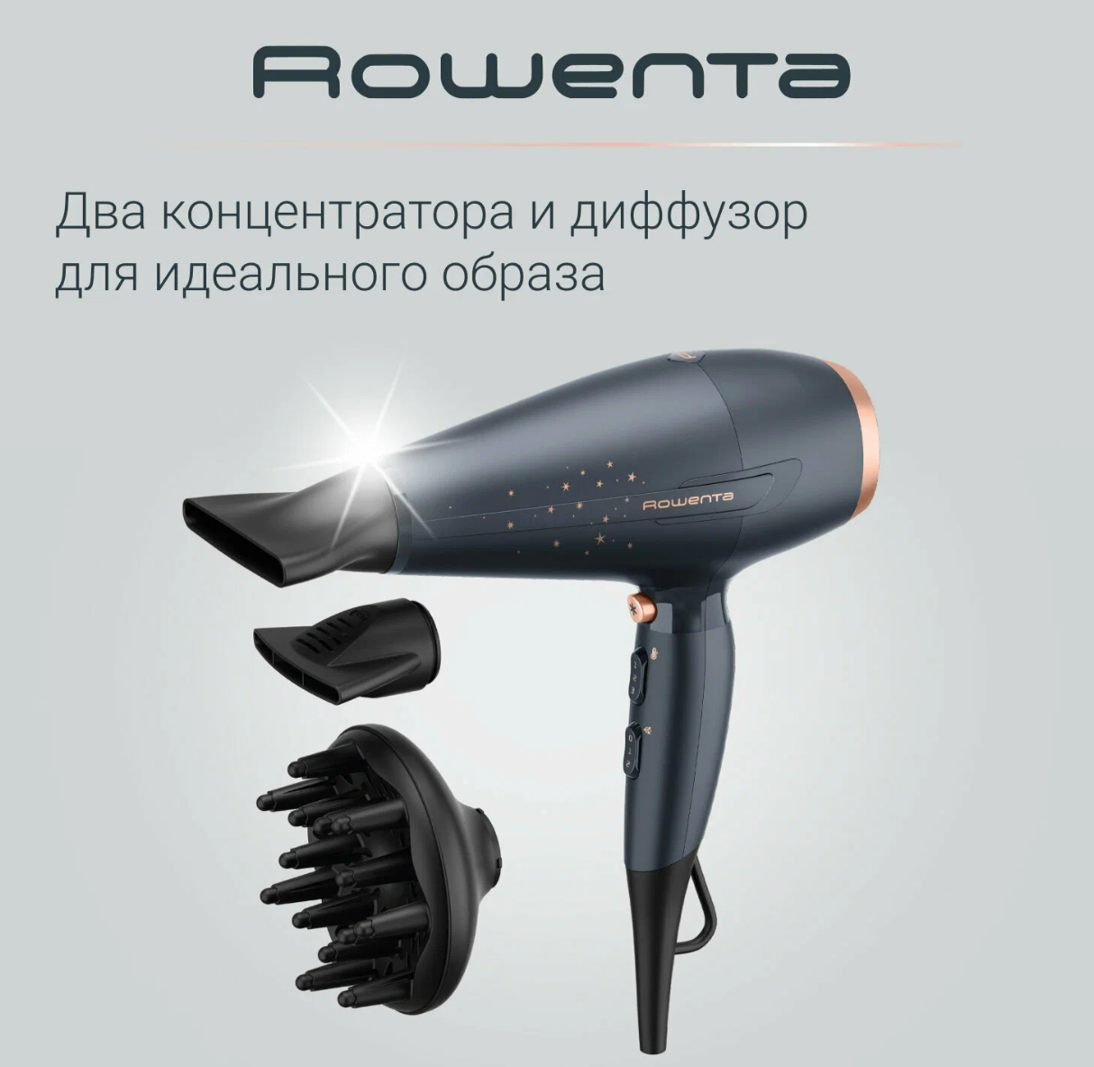 Купить Фен для волос Rowenta Pro Power+ Stellar CV7231F0, 2200 Вт, серый, с ионизацией и 3 насадками