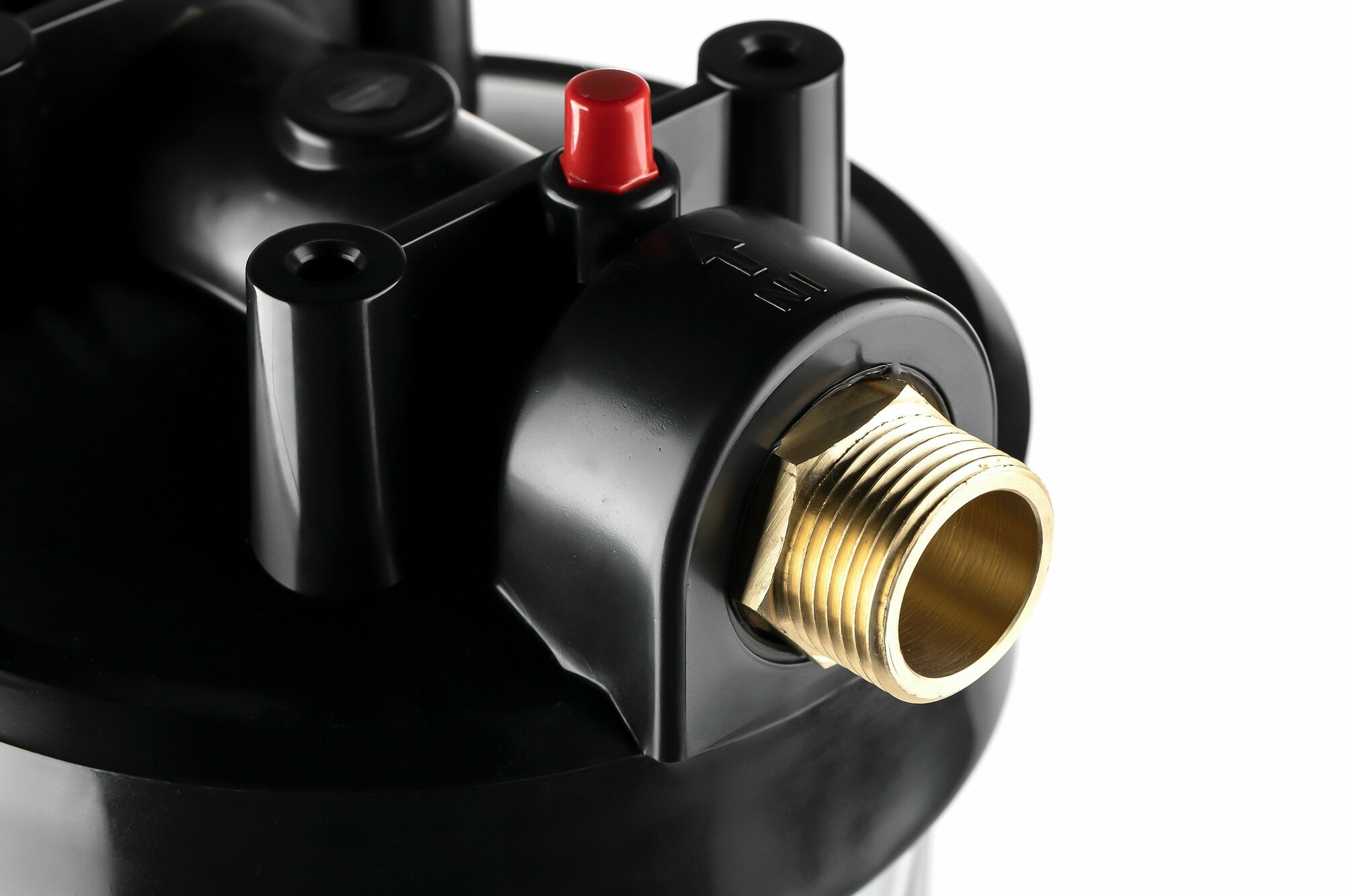 | Дополнительная информация | материал корпуса: прозрачны пластик, крышка корпуса – черный полипропилен в комплекте с латунными ниппелями; макс. температура воды на входе: 40 °C; макс. давление на входе: 7 атм |