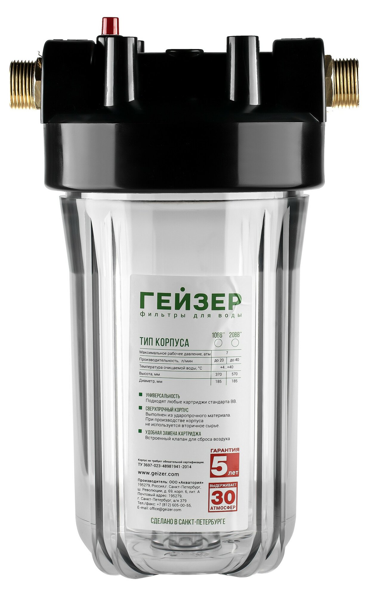 ГЕЙЗЕР ВВ10" Корпус для холодной воды 1" прозрачный, латунные ниппели арт.50685 интересное: