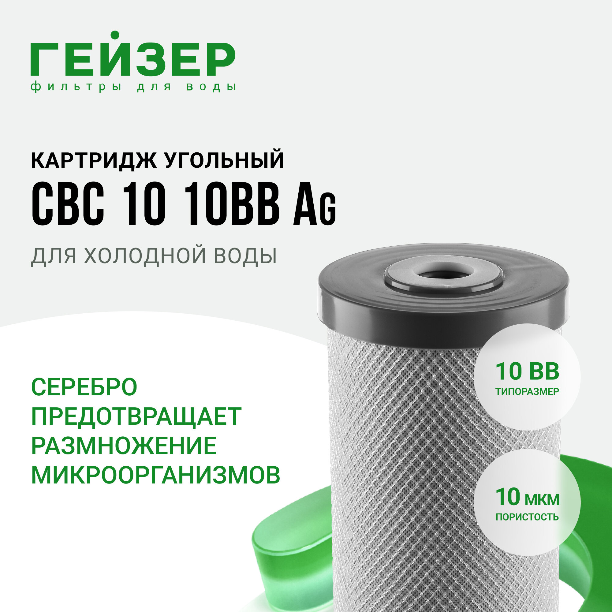 Картридж угольный с серебром CBC 10 Ag-10ВВ Гейзер 27095
