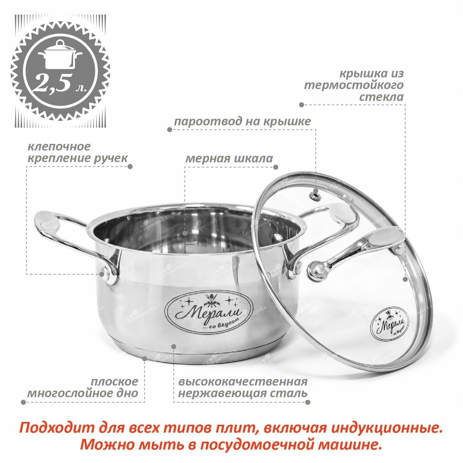 Купить Кастрюля с крышкой Мерали из нержавеющей стали для всех видов плит газовых электрических и индукционных 2,5 л