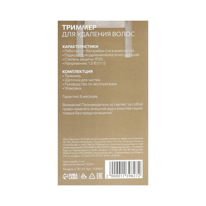 Триммер для волос LTRI-01, для носа и ушей, 1хАА
