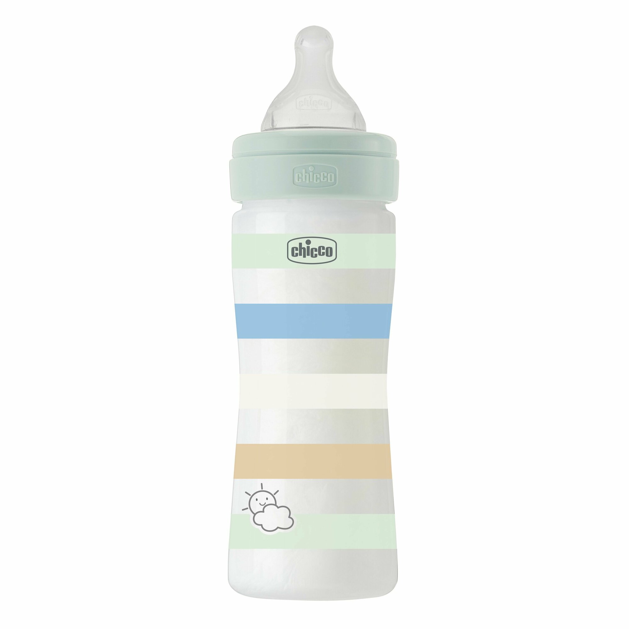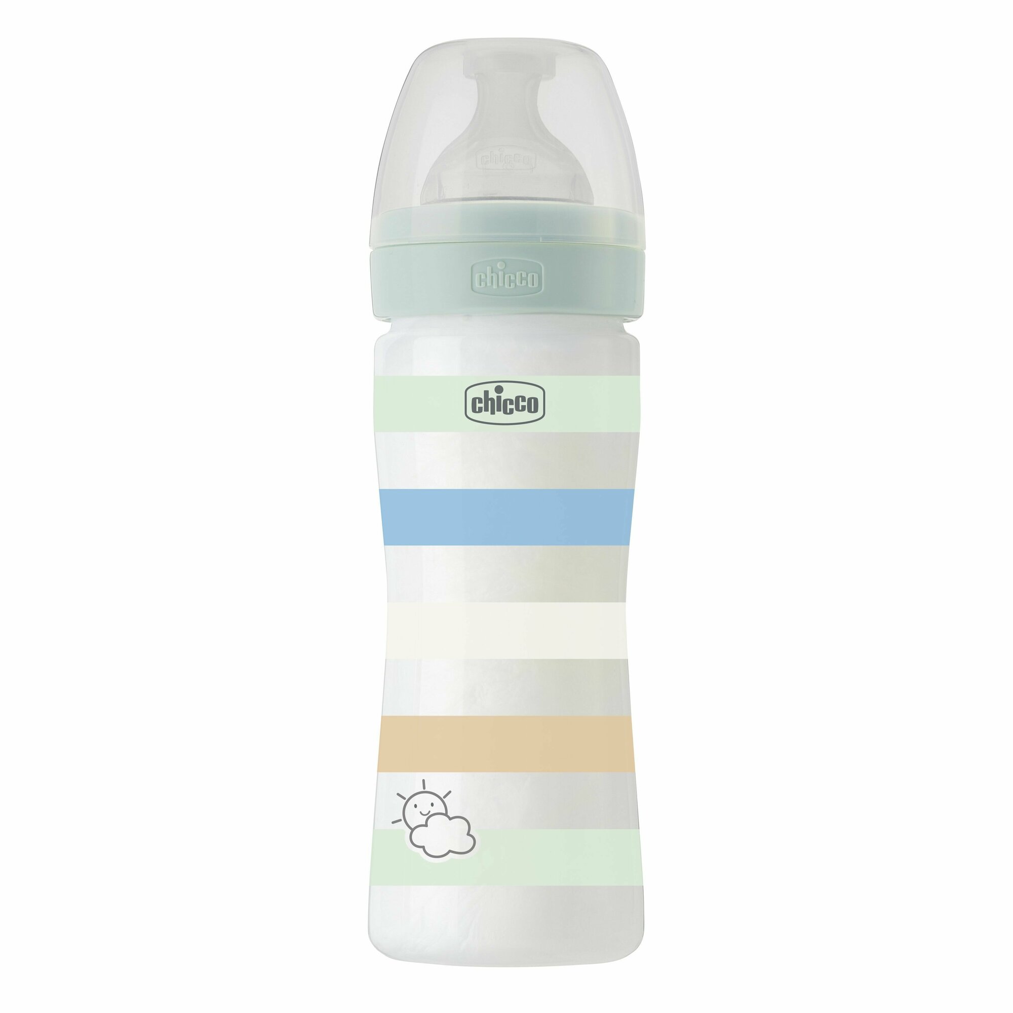 Купить Бутылочка для кормления CHICCO Well-Being Boy 2мес.+,сил.соска средн.поток,РР,250мл.,зеленая