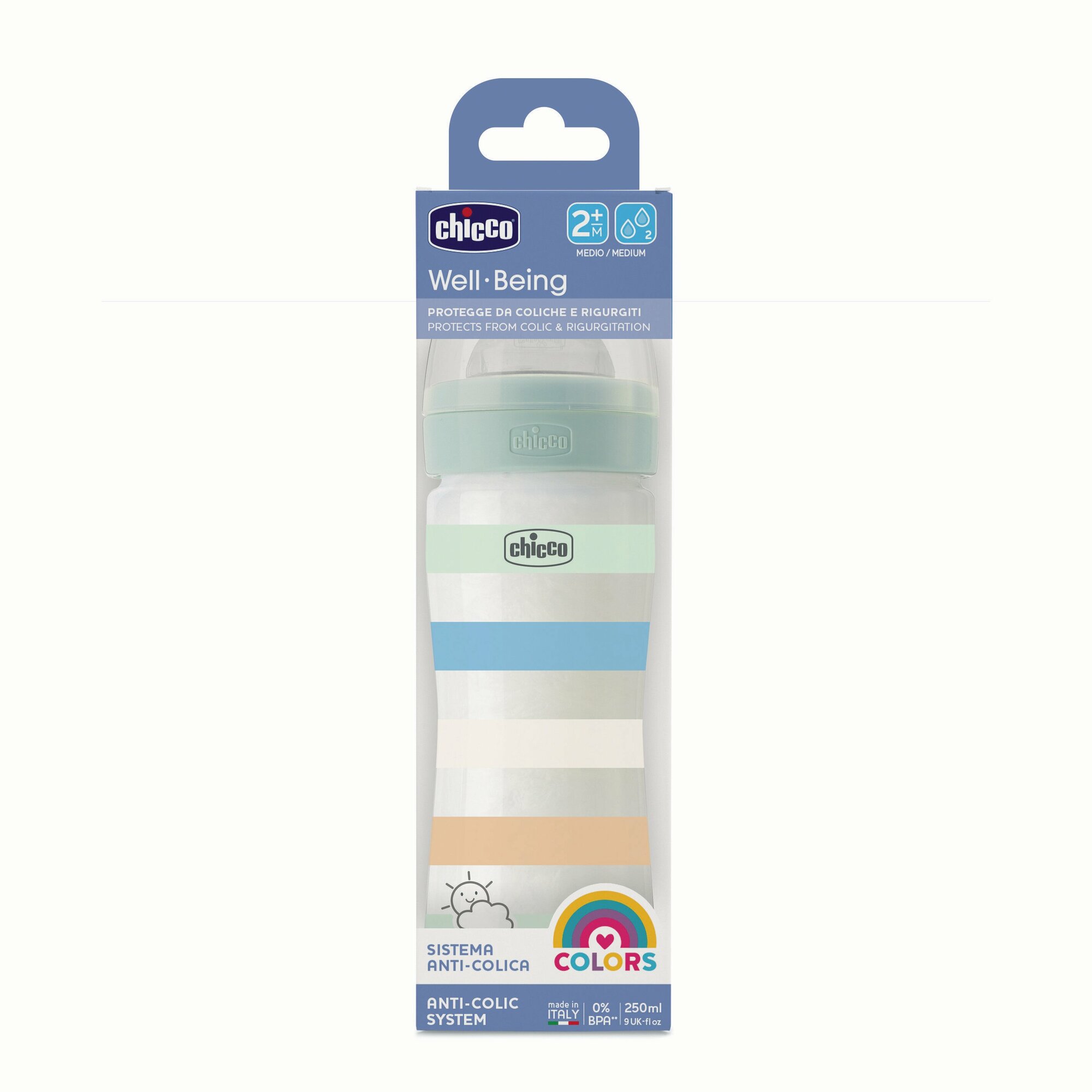 Бутылочка для кормления Chicco Well-Being Uni 2мес. с силиконовой соской средний поток, РР, 250мл./бутылка для кормления/для путешествий/бутылочка детская с соской/детская бутылка/для новорожденных/ бутылка для воды детская