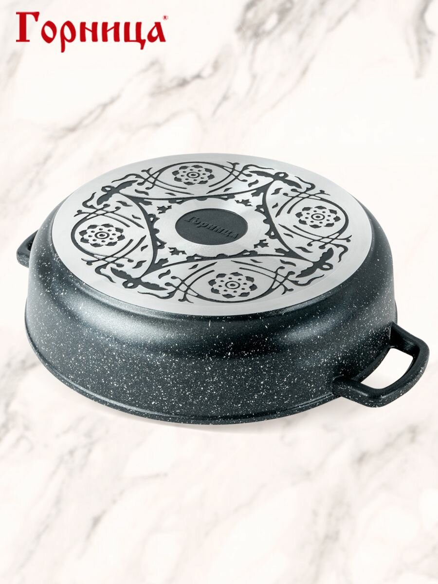 Жаровня алюминиевая 5,5 л с крышкой в подарочной упаковке Универсальная серии Гранит Горница