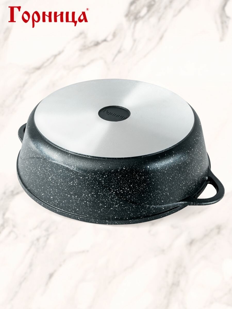 Жаровня алюминиевая 5,5 л с крышкой в подарочной упаковке Универсальная серии Гранит Горница