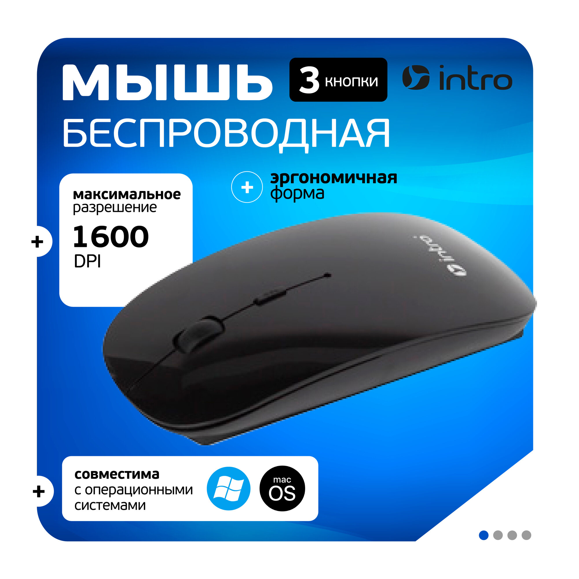 Мышь беспроводная компьютерная игровая MW650 Intro полноразмерная, черная 800/1200/1600 DPI интересное: