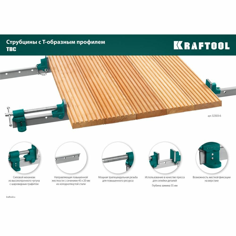 KRAFTOOL TBC/7 2000/55 мм, Струбцина с Т-образным профилем (вайма) (32303-7)