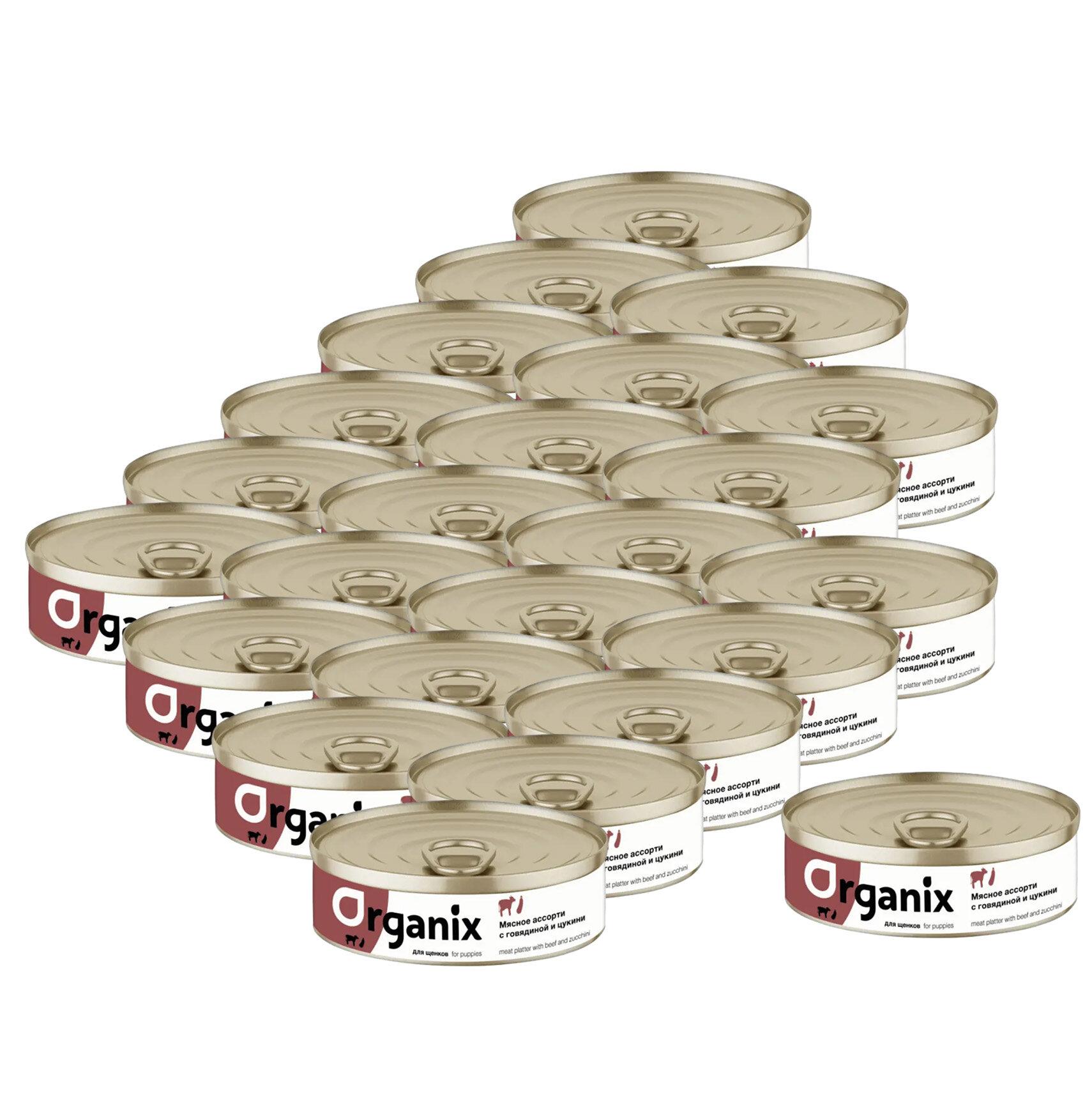 Купить Organix Консервы для щенков Мясное ассорти с говядиной и цукини 24 шт по 100 г