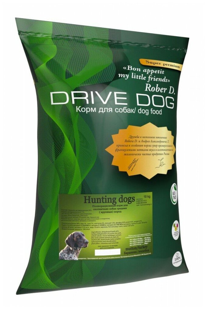 DRIVE DOG Hunting dogs полнорационный корм для охотничьих собак средних и крупных пород баранина с индейкой (15 кг)
