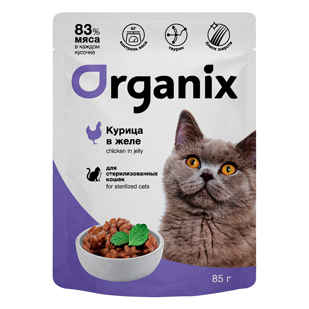 Organix Паучи для стерилизованных кошек курица в желе 0.085кг 1шт. 0.085 кг