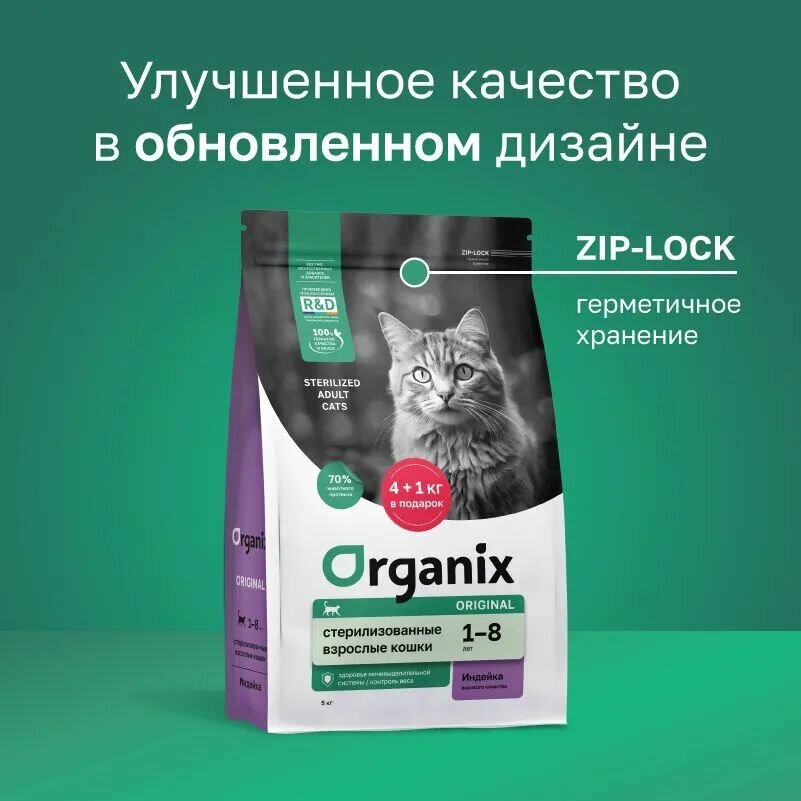 ORGANIX ORIGINAL ADULT CAT STERILIZED для взр кастр котов и стерилизов кошек с индейкой 1,5 кг