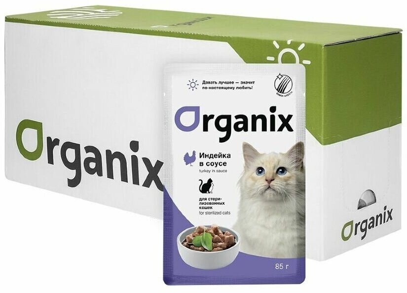 Купить Organix Паучи для стерилизованных кошек индейка в соусе 0.085кг 1шт. 0.085 кг