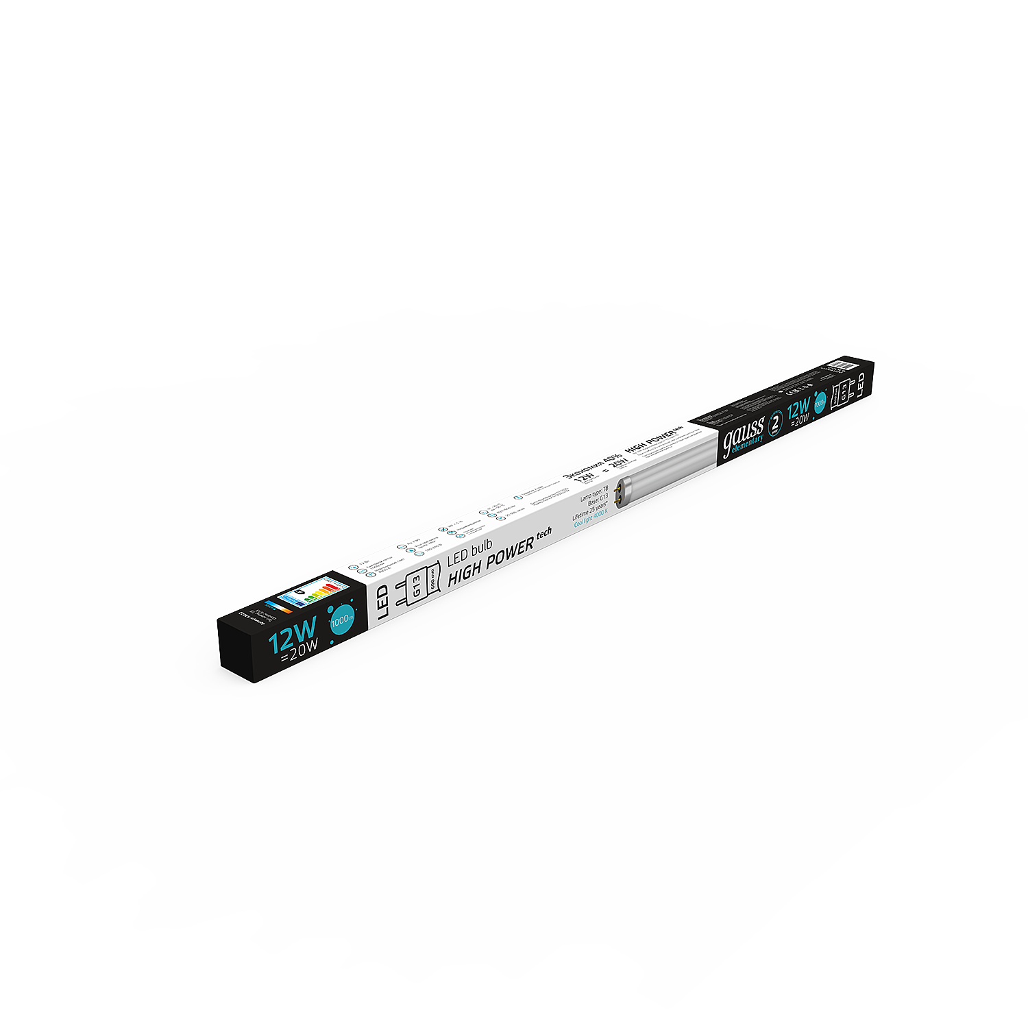 Лампа светодиодная Gauss Elementary 93022 12Вт цок.:G13 трубка 180B 4000K св.свеч.бел.нейт. (упак.:1шт)