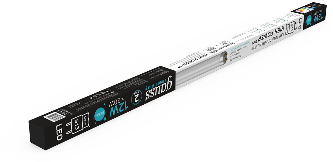 Лампа Gauss Elementary T8, 12W, 1000lm, 4000K, G13, 600mm, стекло, LED, 1/20 93022