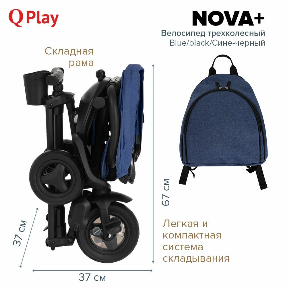 СохранитьТрехколесный складной велосипед Qplay Nova+ 2023, Blue/black/Сине-черный интересное: