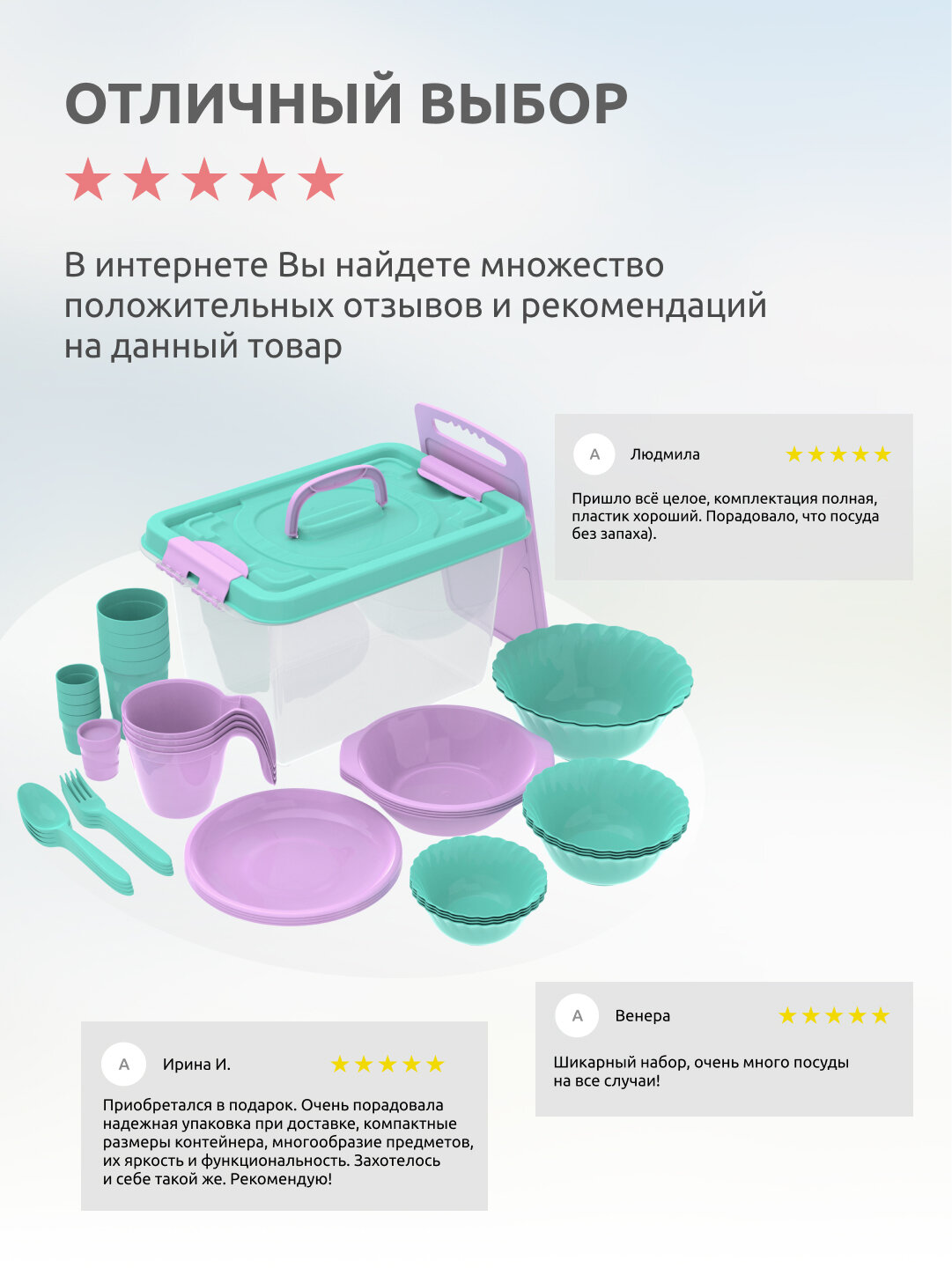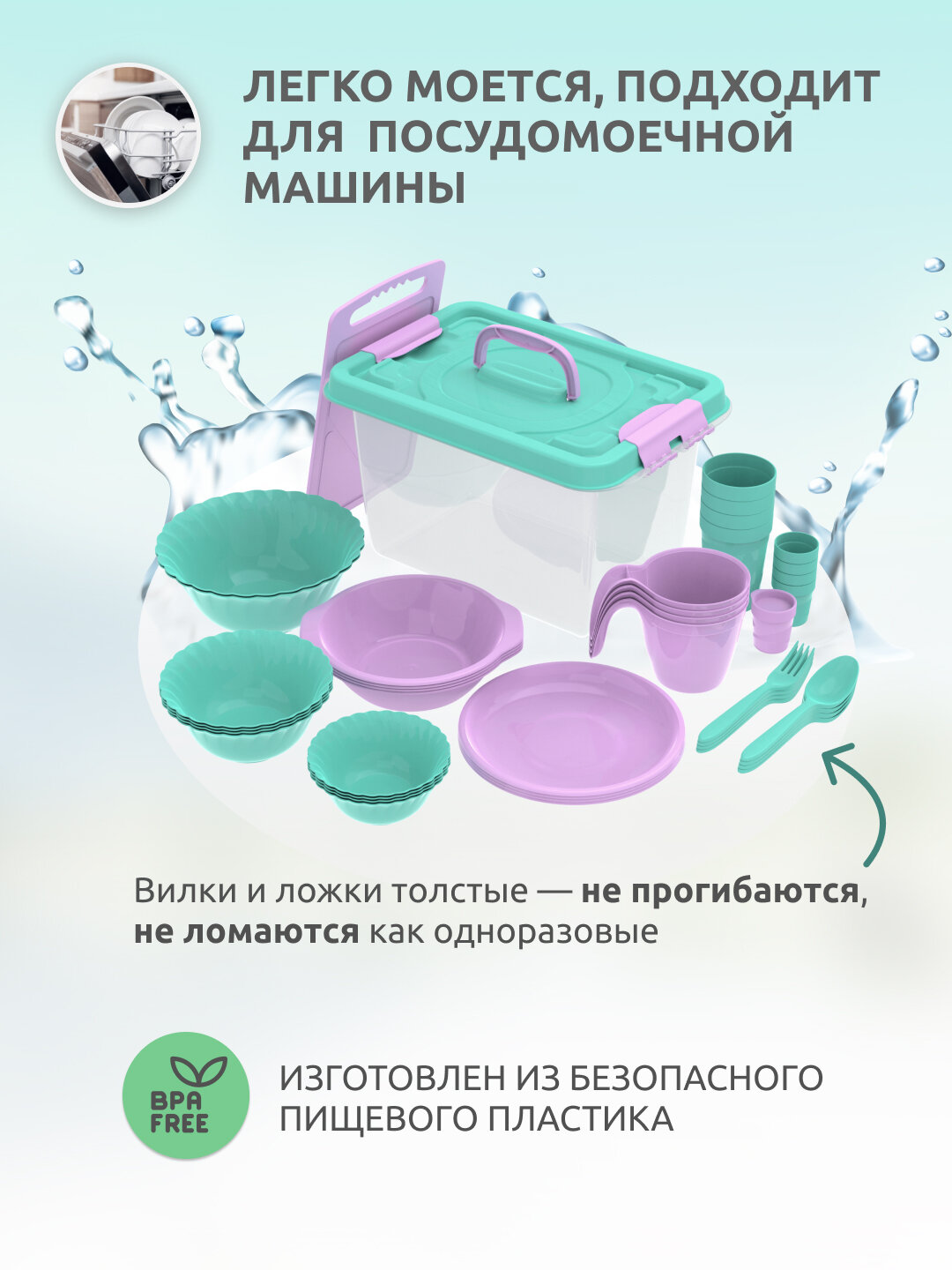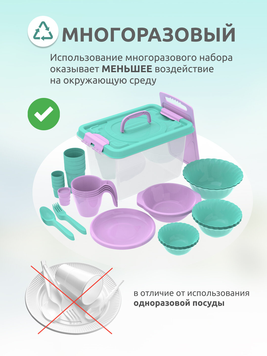 Набор посуды для пикника Альт-Пласт №17, 58 предметов на 6 персон, пластик
