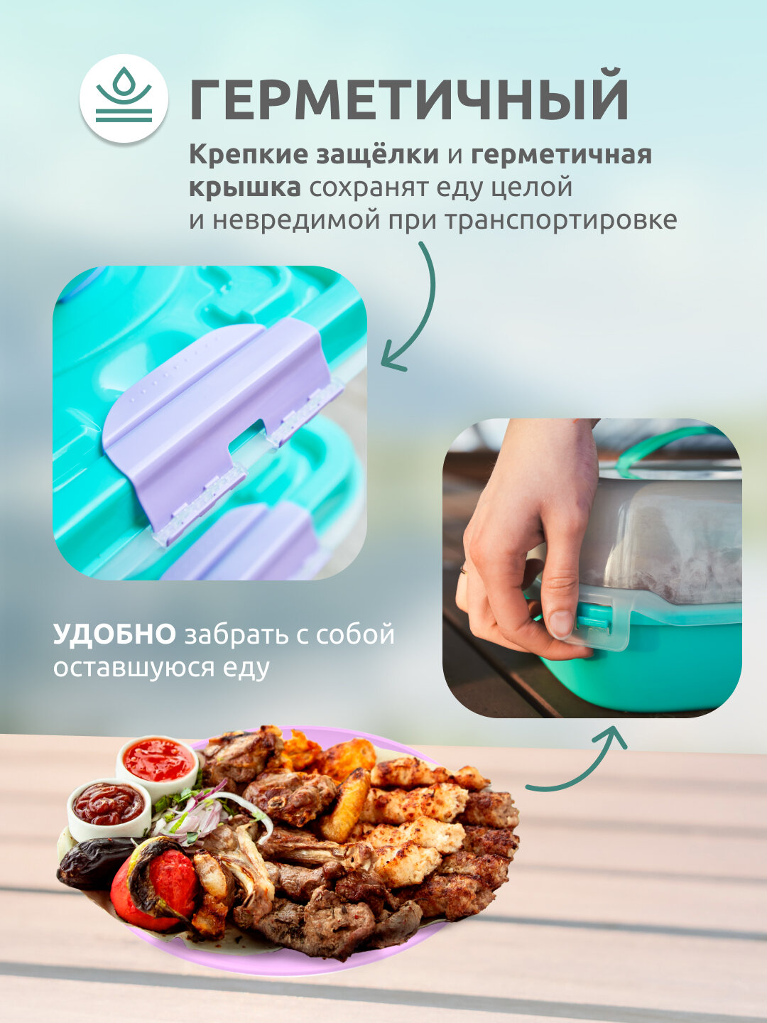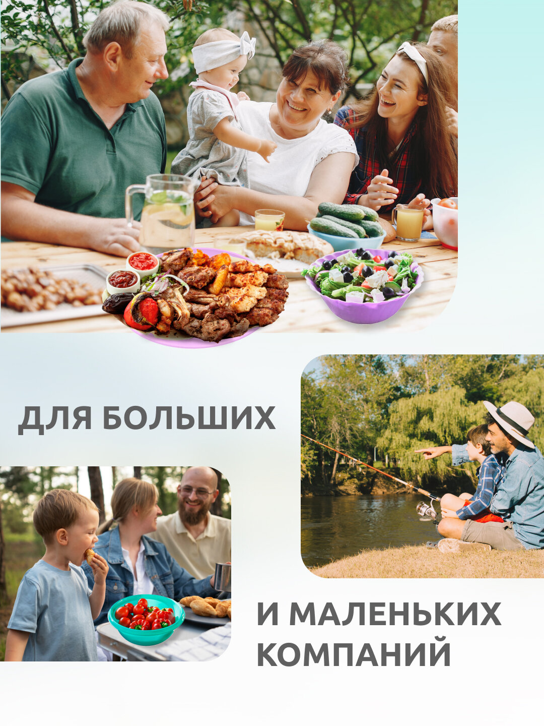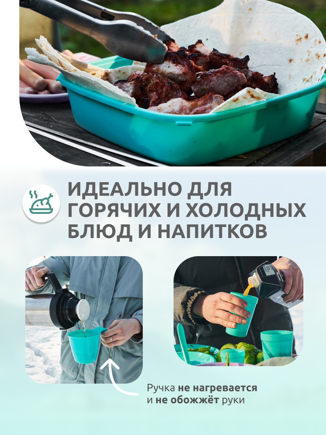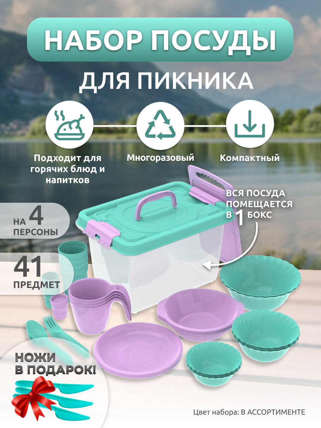 Набор походной пластиковой посуды в контейнере с ручкой для пикника, на шашлыки, для туризма, барбекю для 4 человек 42 предмета №21 АП780 Повод есть