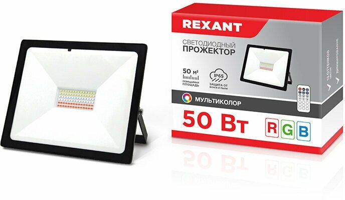 Прожектор Rexant RGB LED с пультом ДУ, 50Вт, черный