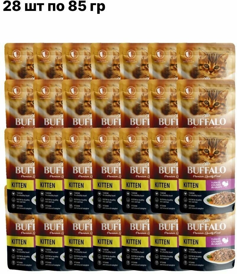 Mr.Buffalo 90171/В310 KITTEN пауч. для котят Индейка на пару в соусе 85г (28 штук)