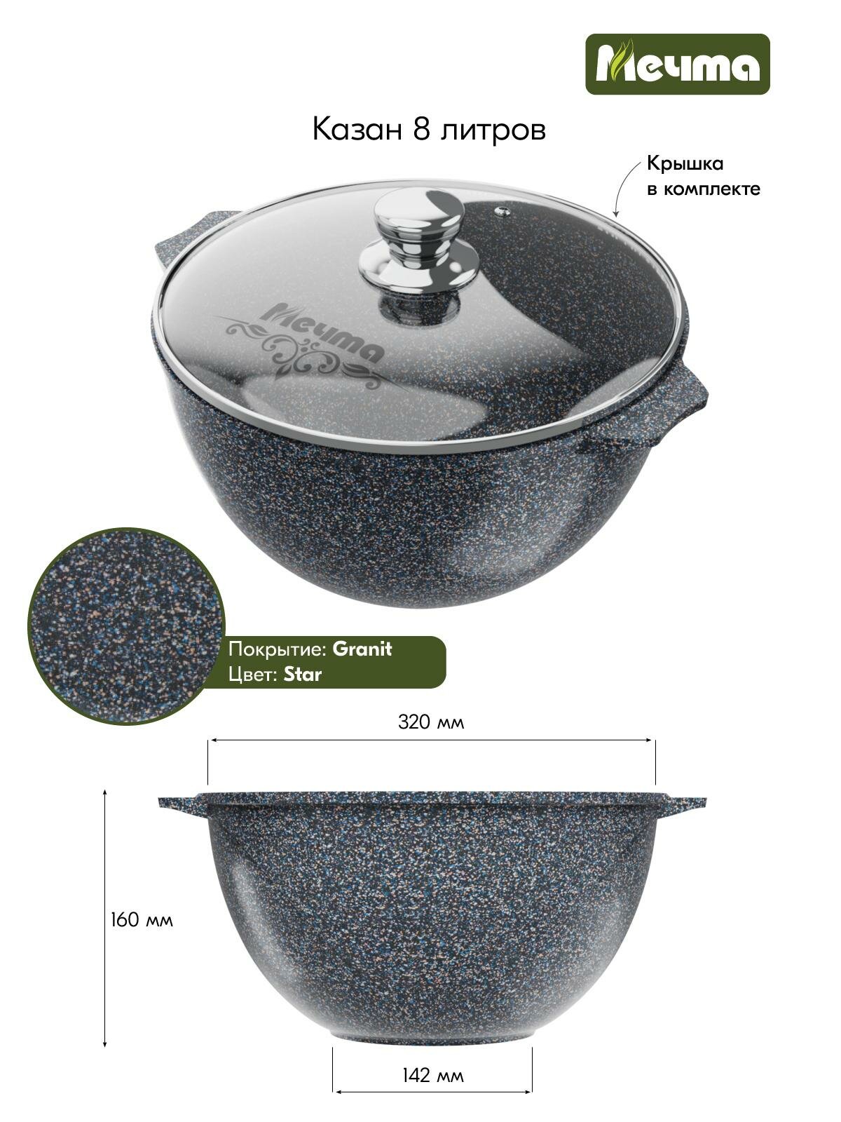 Казан Мечта 8 л. с крышкой 58803 интересное: