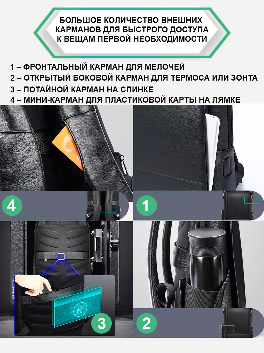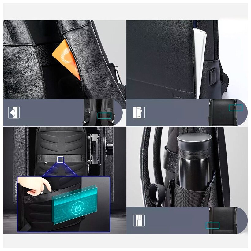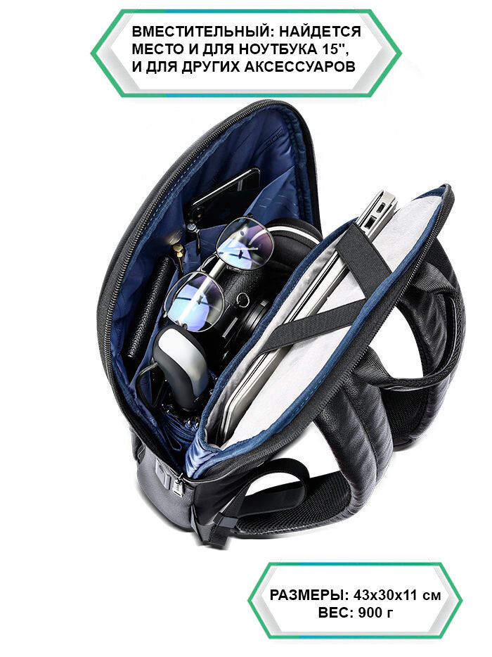 СохранитьРюкзак из натуральной кожи городской Bopai универсальный 15л, для ноутбука 15", с USB портом, влагостойкий, молодежный, черный интересное: