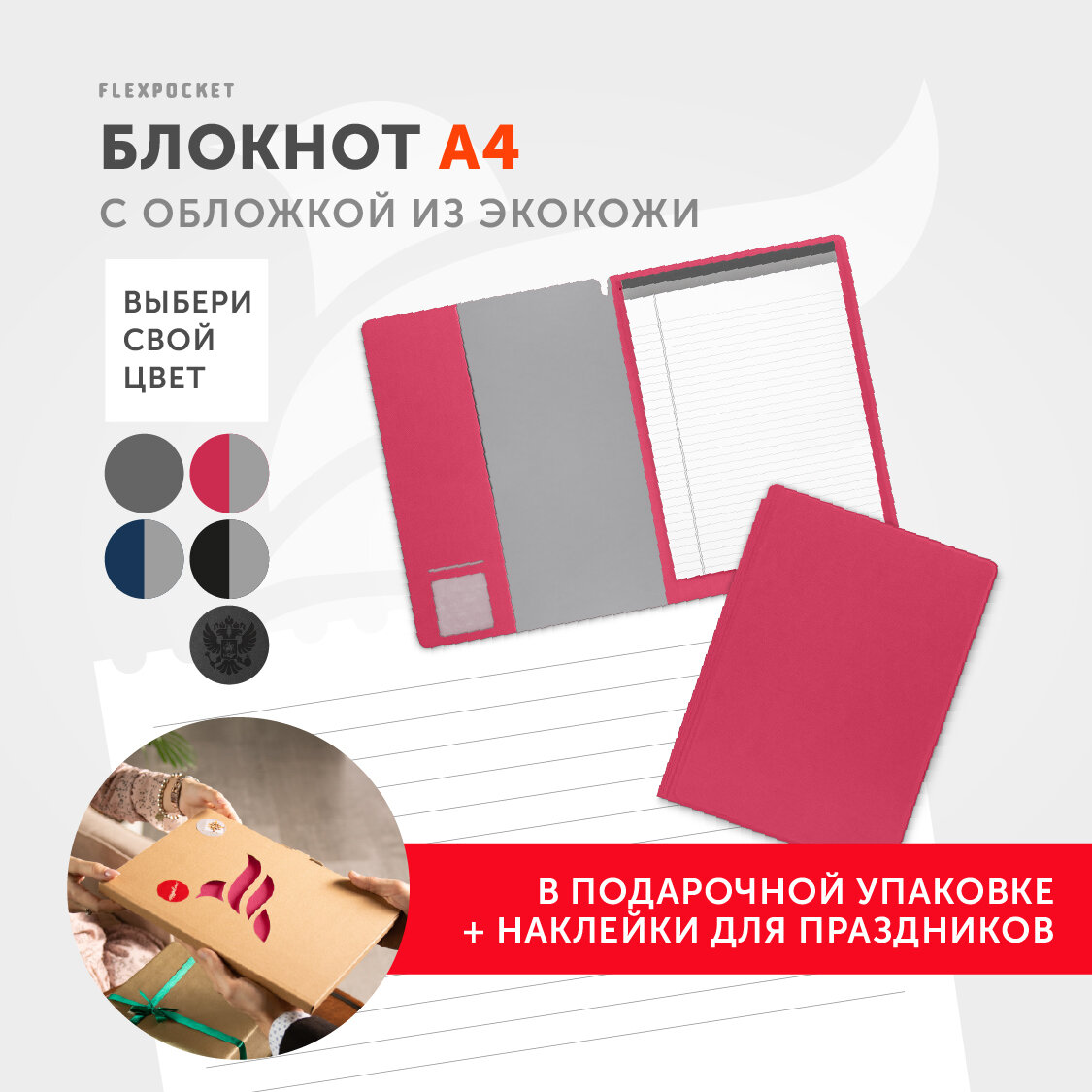 Купить Блокнот-планшет A4 Flexpocket в обложке из экокожи Saffiano, в подарочной упаковке, цвет розовый