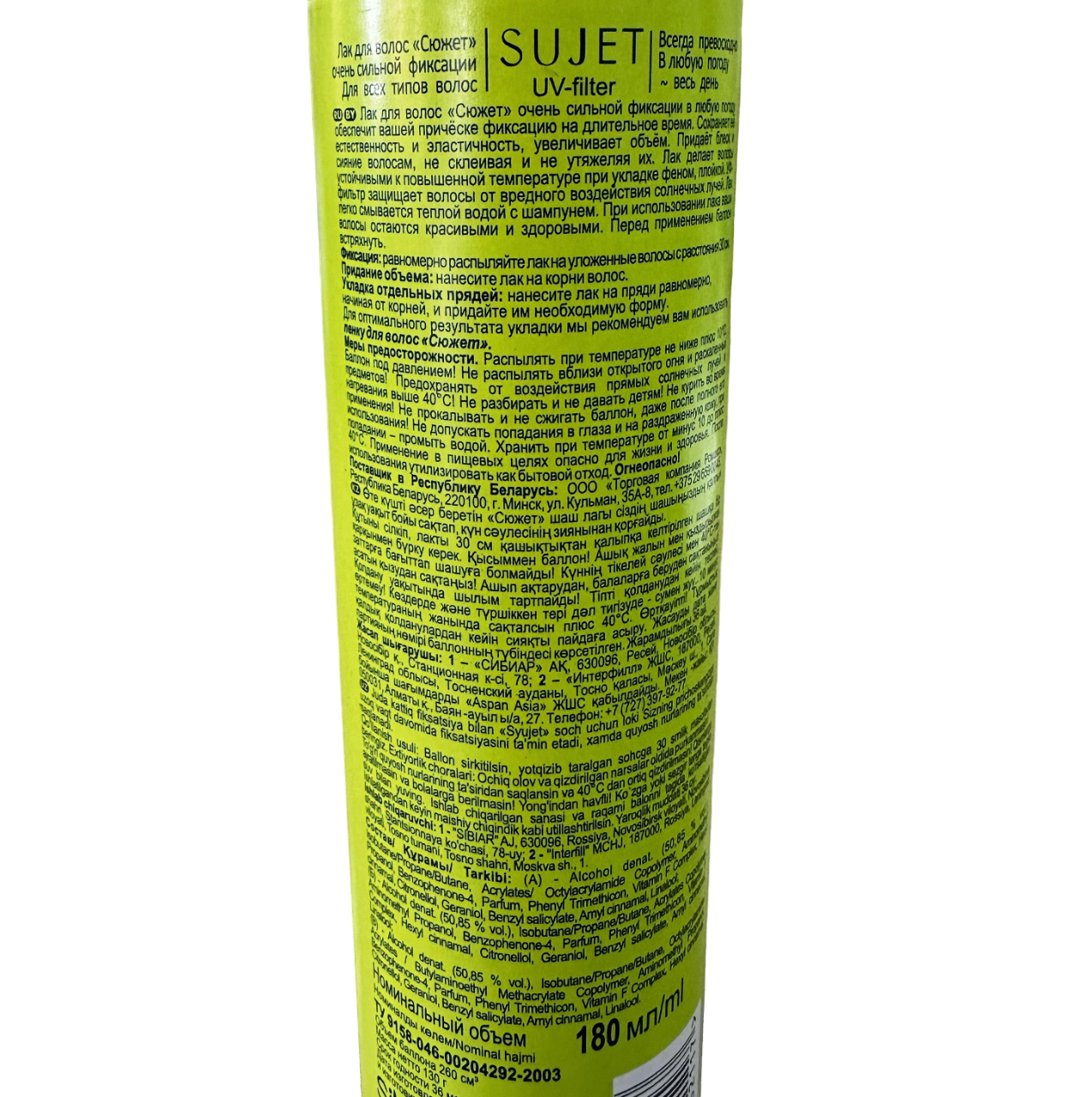 Sujet Лак для укладки волос UV-filter, экстрасильная фиксация, 180 мл