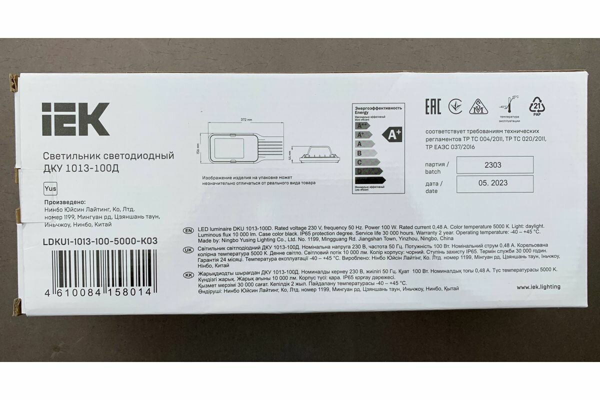 Светильник светодиодный ДКУ 1013-100Д 5000К IP65 IEK LDKU1-1013-100-5000-K03 LDKU1-1013-100-5000-K03 .