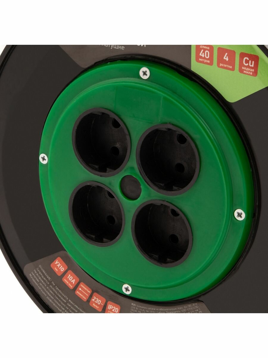 Купить Удлинитель силовой СИБРТЕХ 95843, розеток 4шт, 2x1.0 кв.мм, 10A, 30м, ПВС, катушка, черный