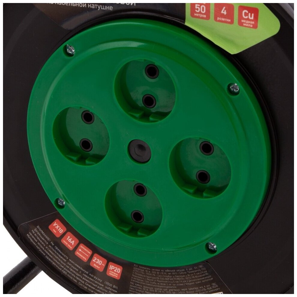 Купить Удлинитель силовой на кабельной катушке Сибртех 4 роз б/з, ПВС, усиленный, 50м, 3500Вт(16А), тип УХ10 95870