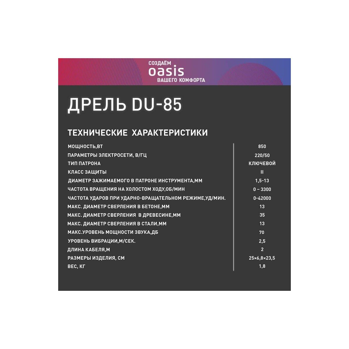 Дрель ударная сетевая OASIS DU-85 интересное: