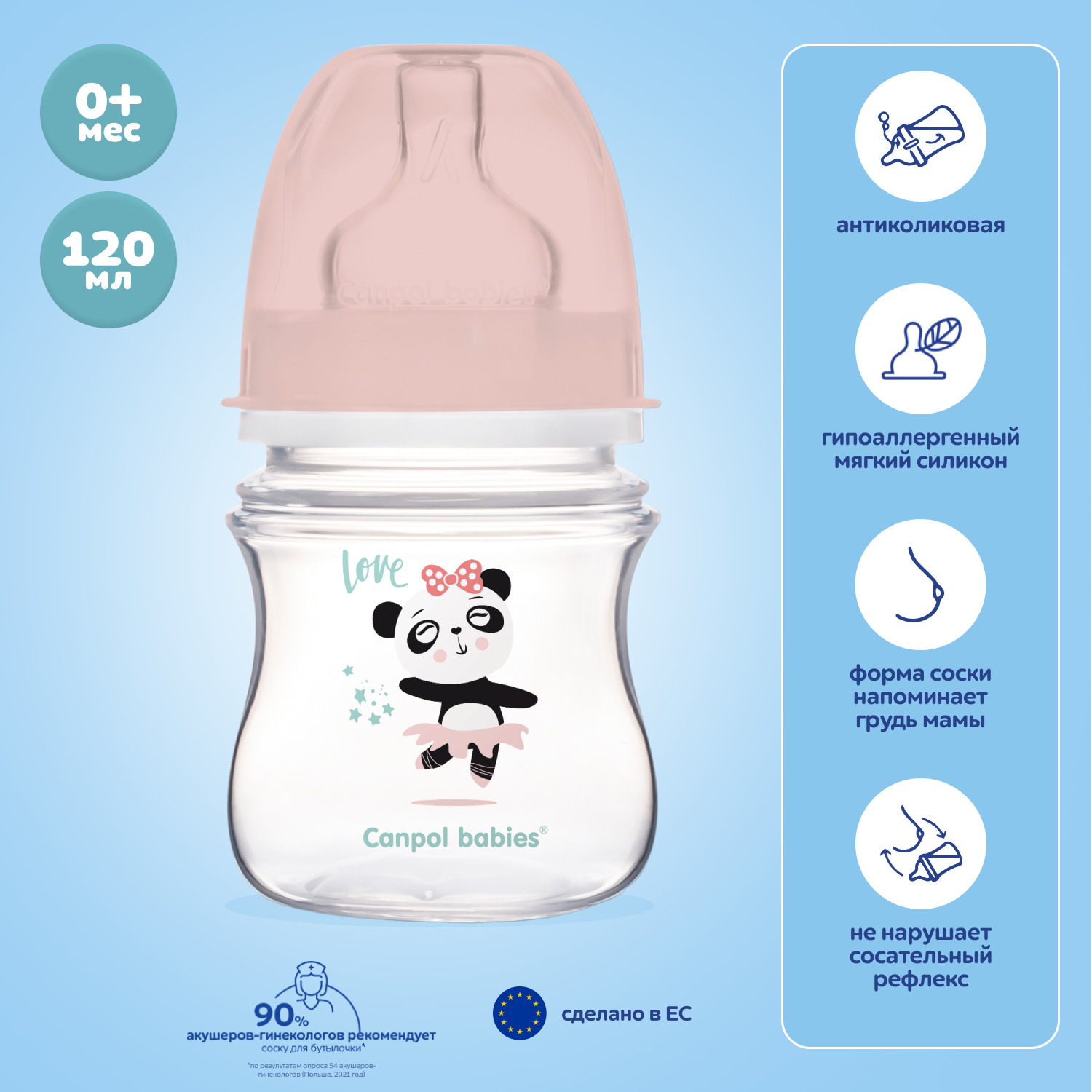 Бутылочка Canpol Babies Toys с широким горлышком антиколиковая, 120мл (с 0 месяцев) розовая
