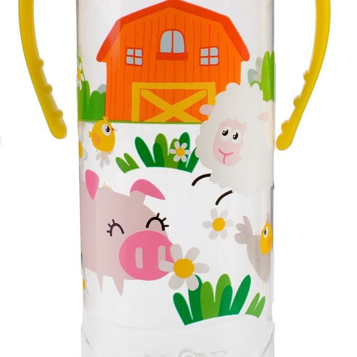 Бутылочка для кормления "Веселая ферма" детская классическая, с ручками, 250 мл, от 0 мес., цвет желтый