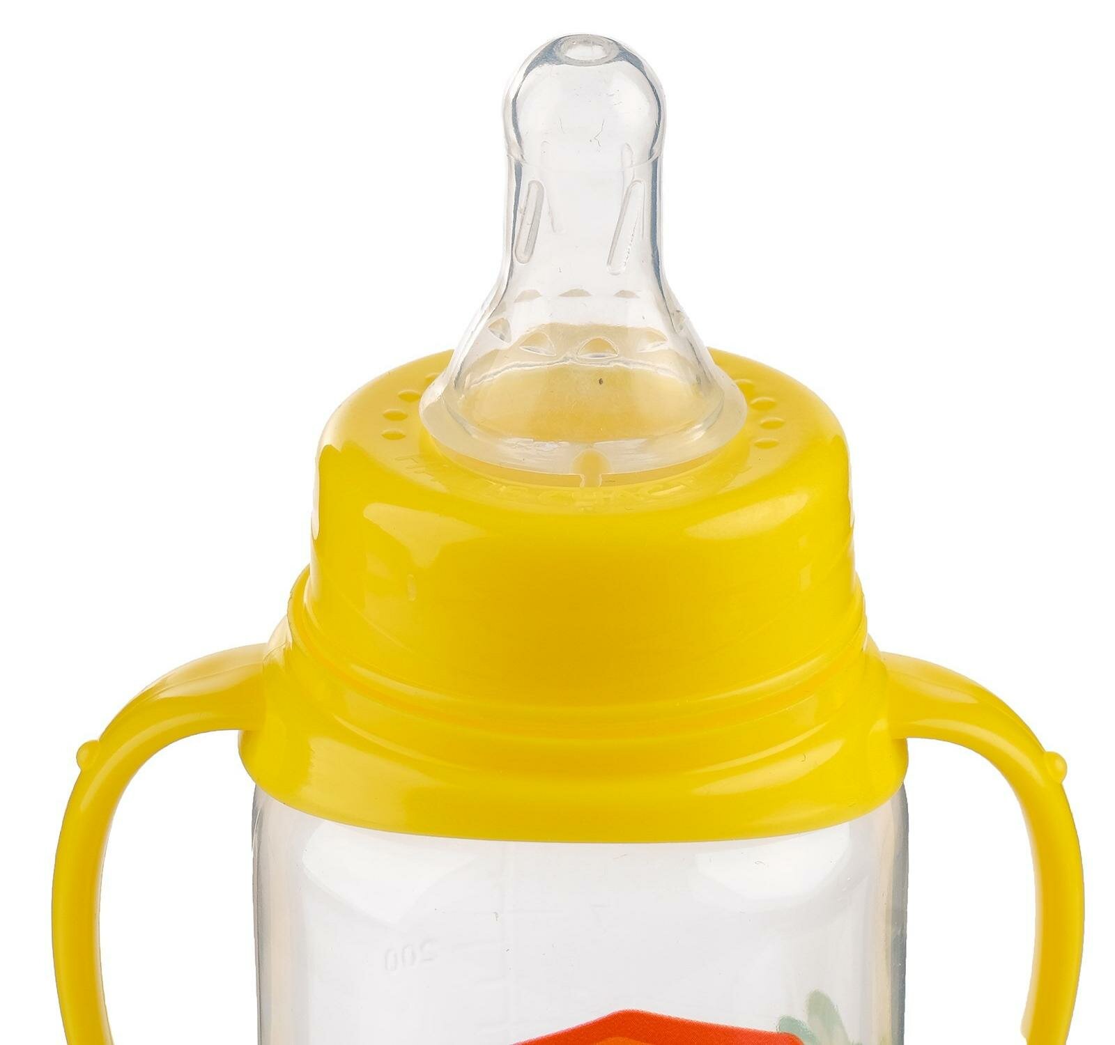 Бутылочка для кормления Весёлая ферма детская классическая, с ручками, 250 мл, от 0 мес., цвет жёлтый