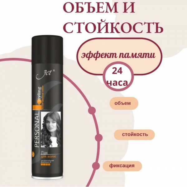 Jet Лак для укладки волос Personal Styling Объем и Стойкость, экстрасильная фиксация, 190 г, 300 мл