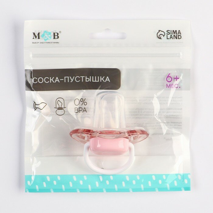 Соска - пустышка силиконовая ортодонтическая M&B, от 6 мес, с колпачком, розовый