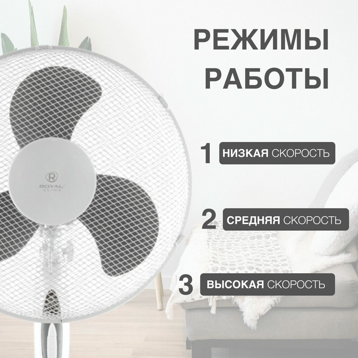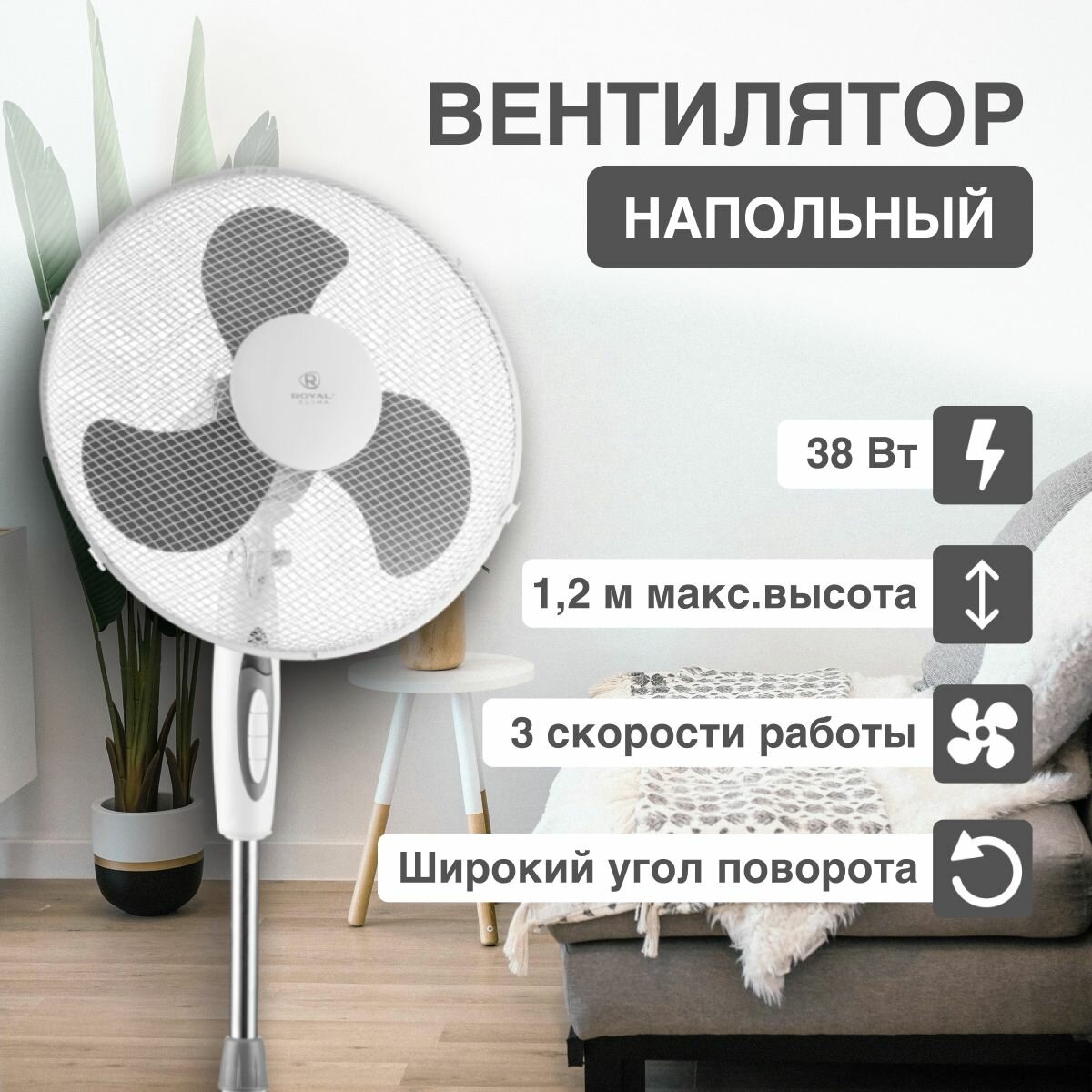 Вентилятор напольный Royal Clima RSF-161M-WT 38Вт скоростей:3 белый интересное: