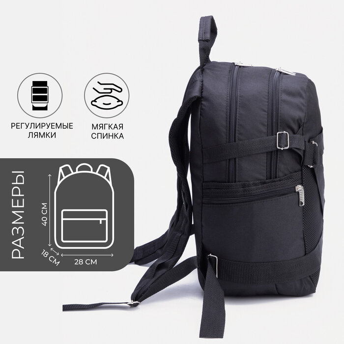 Купить Рюкзак школьный на молнии из текстиля, 5 карманов, цвет чёрный/Рюкзак школьный на молнии из текстиля, 5 карманов, цвет чёрный